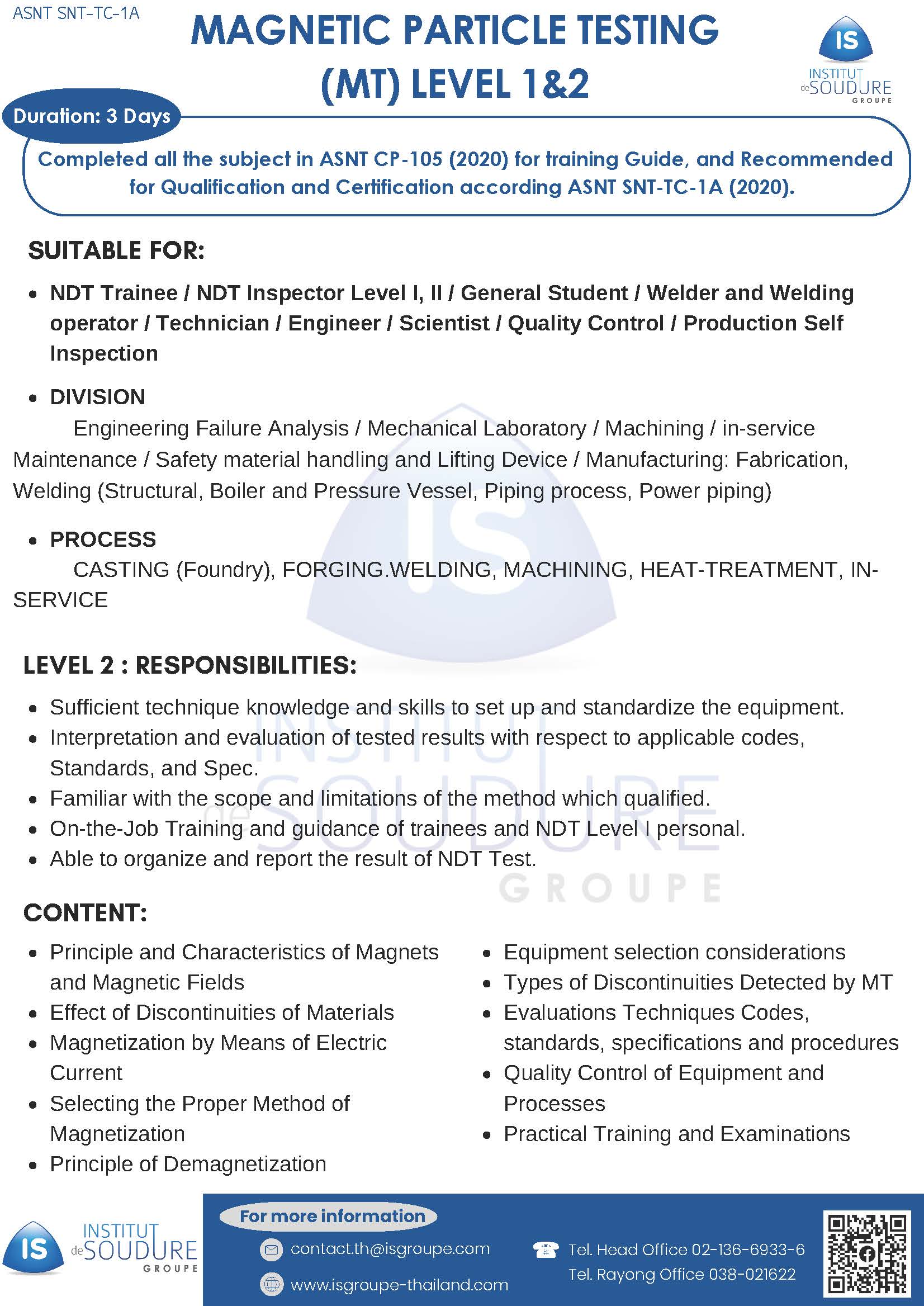 MAGNETIC PARTICLE TESTING (MT) LEVEL 1&2 (SNT-TC-1A)