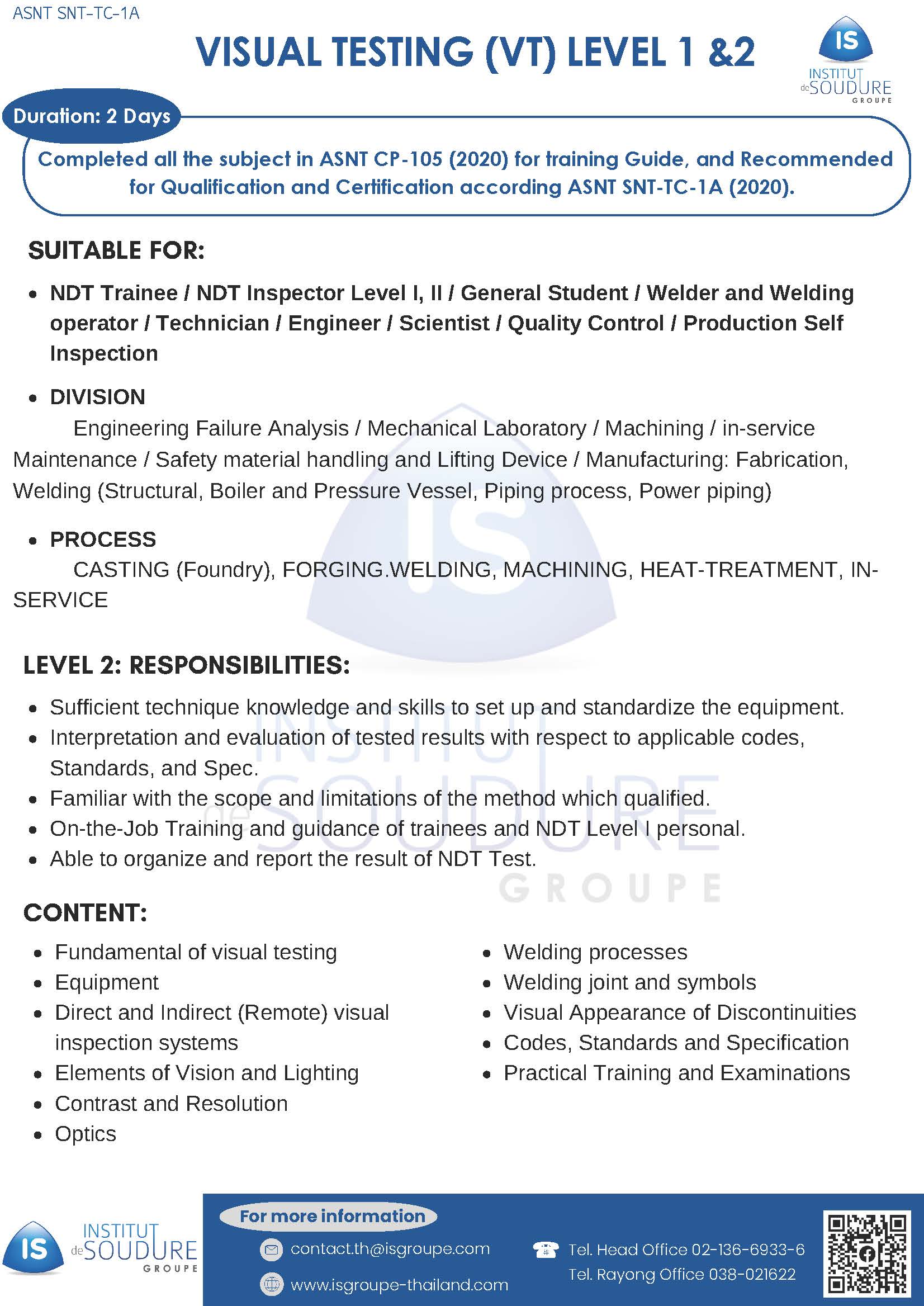 VISUAL TESTING LEVEL (VT) 1&2 (SNT-TC-1A)